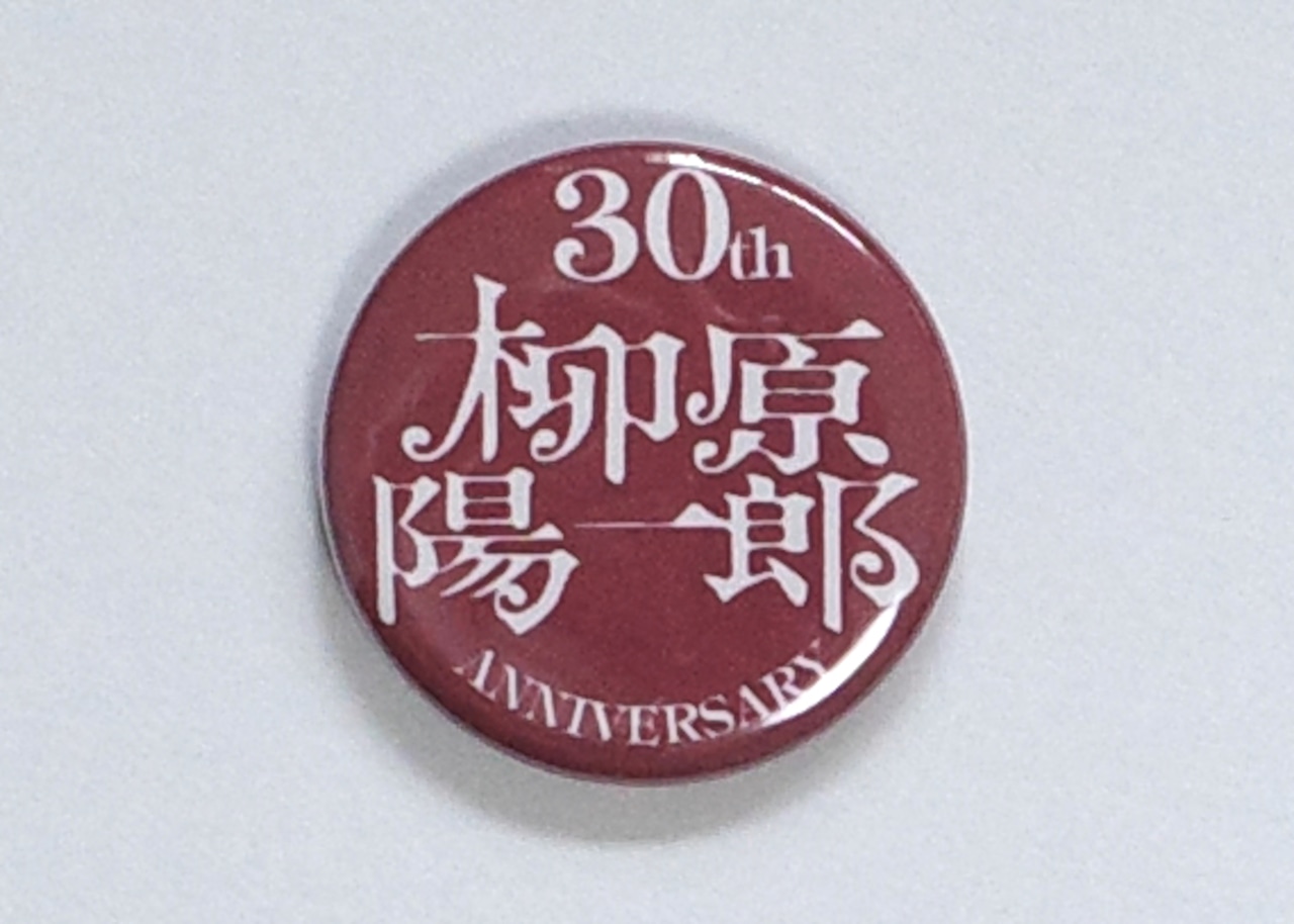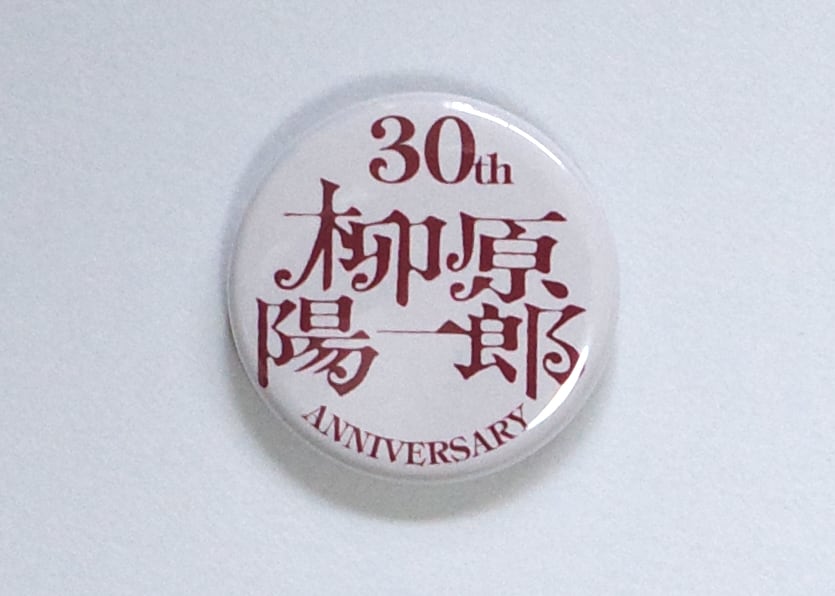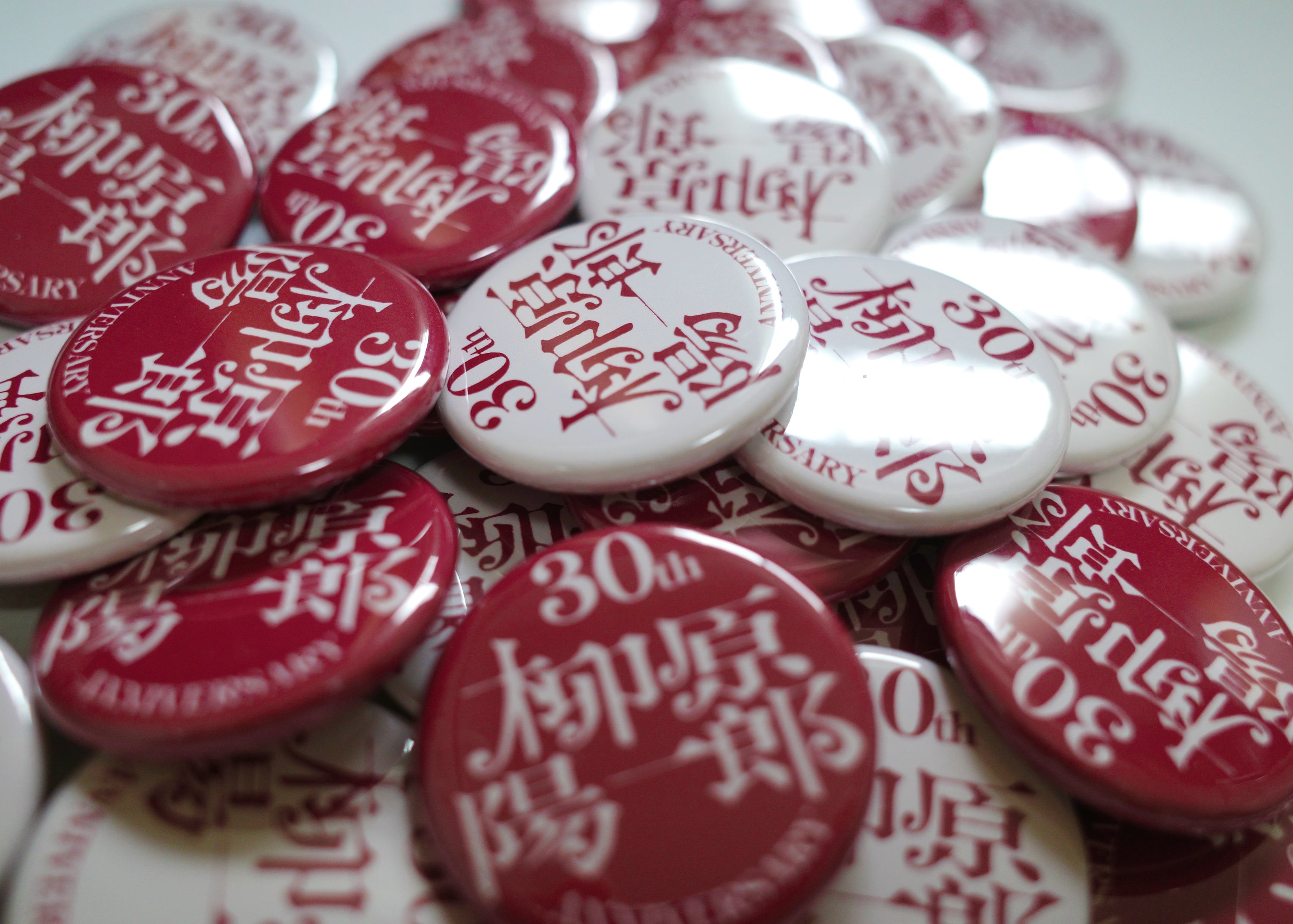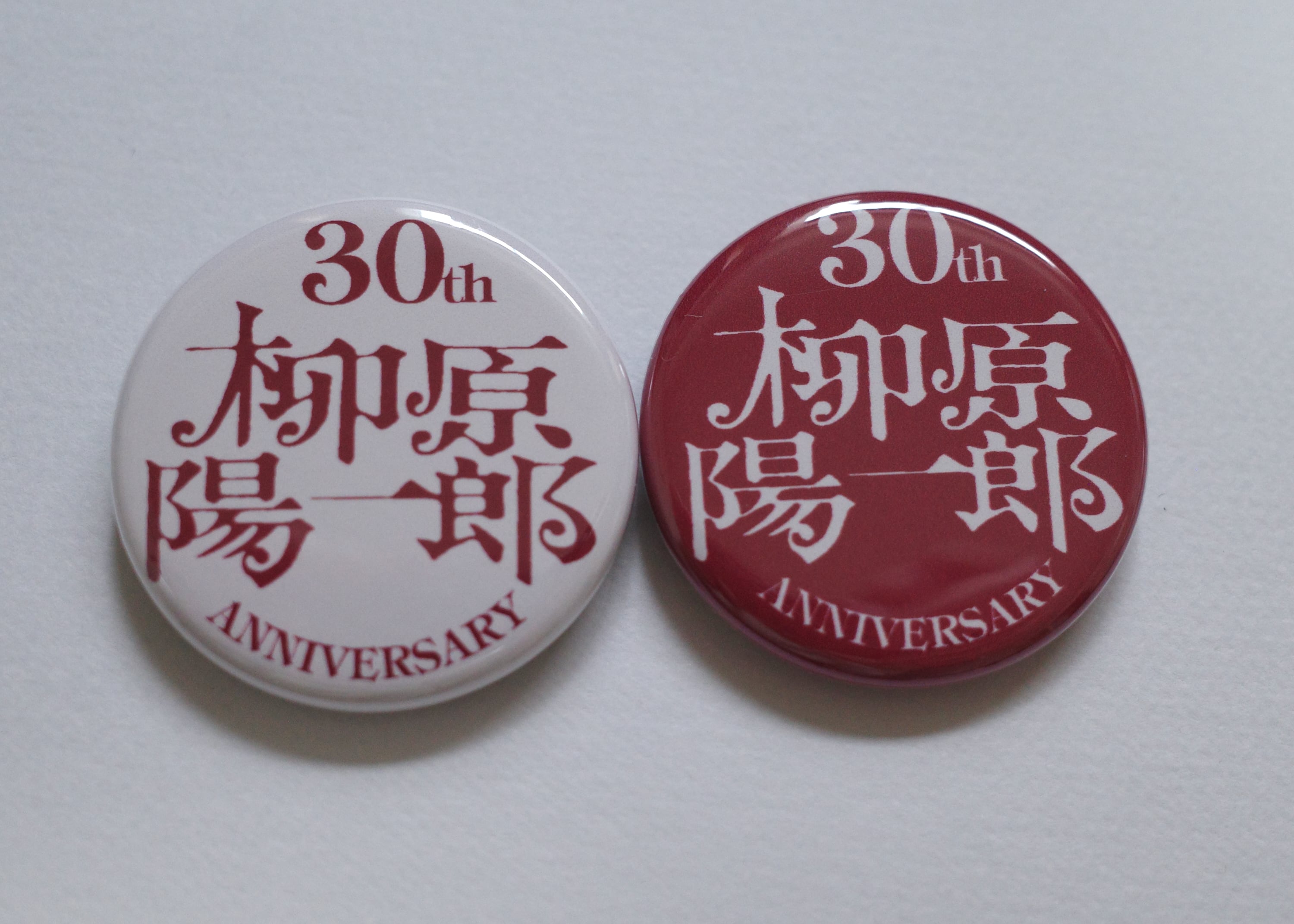 「柳原陽一郎 30th Anniversary」のロゴをプリントした缶バッジです。おめでたい紅白セットにしました。
