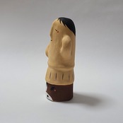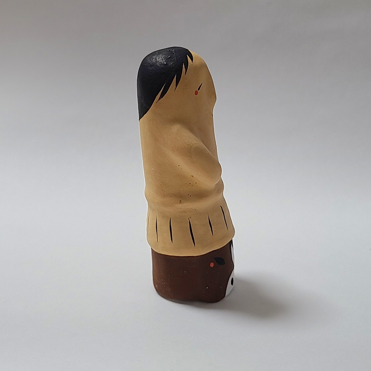 粘土と和紙を混ぜて焼かずに絵付けをし、人形の中には小豆を入れて、ひとつずつ手作りで作りました。