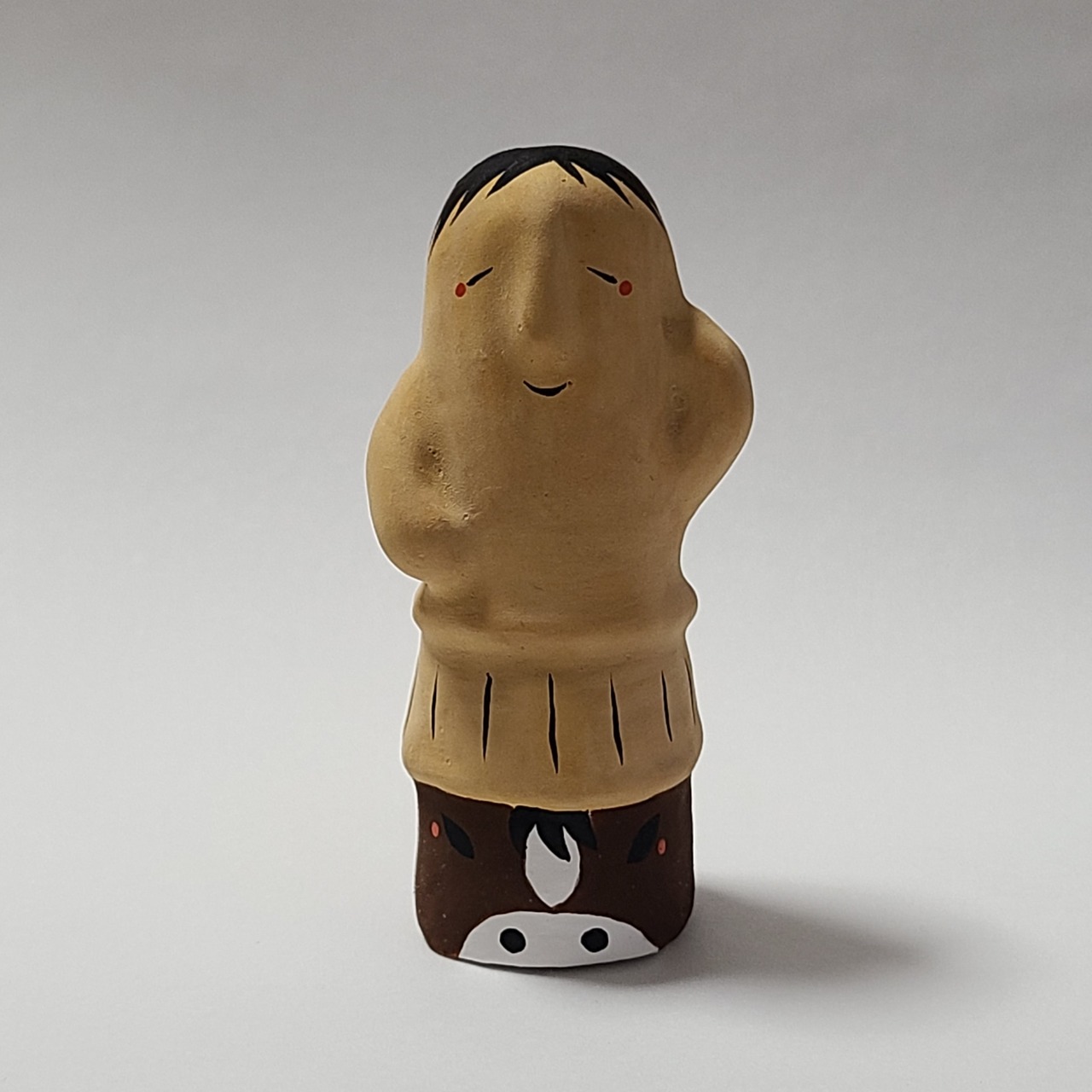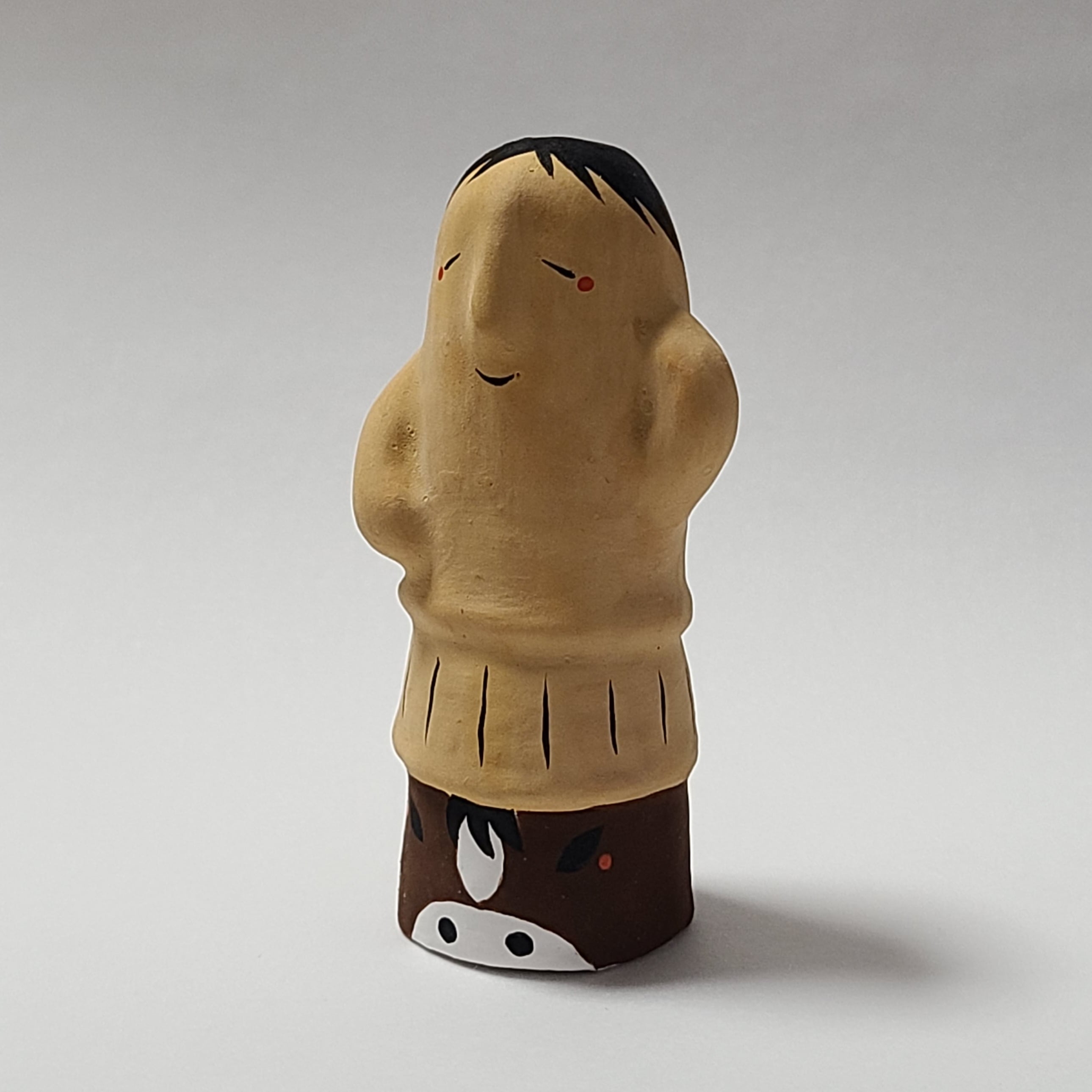 柳原をモデルにした埴輪の土人形と干支を合わせた「やなにわ」。